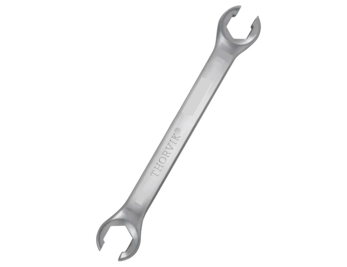 Сочетают в своей конструкции способность передавать высокие нагрузки, как накидной ключ, с удобством рожкового. Разрезные ключи применяются, в первую очередь, для обслуживания штуцеров трубопроводов, когда использование рожкового ключа может повредить деталь, а применение накидного или торцевой головки невозможно. Инструменты производятся из хромованадиевой стали по стандарту DIN 3118 и соответствует требованиям ГОСТ 10112-2001 по размерному ряду.