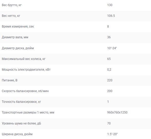 Балансировочный стенд способный балансировать колеса весом до 65 кг.