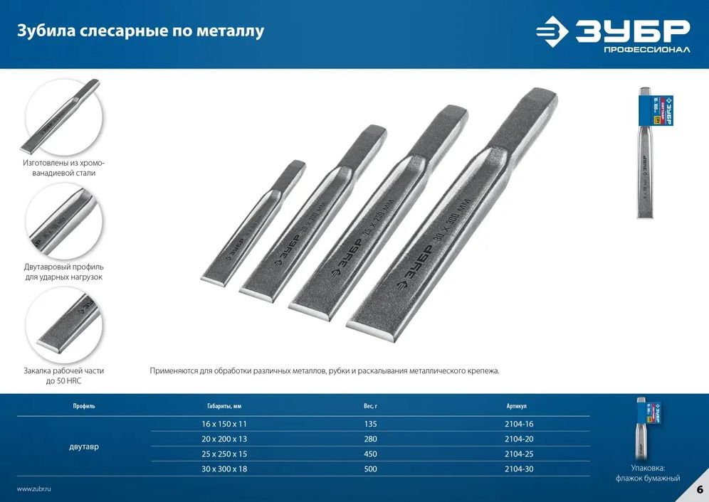 Читать все статьиСлесарное двутавровое зубило по металлу ЗУБР 30x300 мм 2104-30
