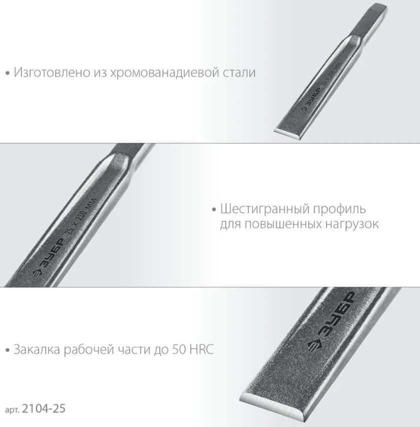 Усиленное зубило. Двутавровый профиль для усиления конструкции. Хромированное покрытие защищает от коррозии.