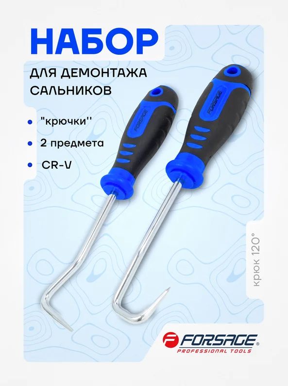 Читать все статьиСъемники (крючки) для демонтажа сальников, набор 2пр. Forsage